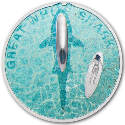 Der Weiße Hai gehört zu den besonders beliebten Münzmotiven – aber so eindrucksvoll wie auf der neuen Silbermünze Great White Shark von Coin Invest Trust wurde er bisher noch nicht präsentiert. Mit doppeltem High Relief und Kolorierung gehört dieses Sammlerstück mit Ausgabeland Palau wirklich zu den Highlights des Jahres für die Tierfans unter den Münzsammlern. Die Auflage ist streng limitiert auf nur 2021 Exemplare.
