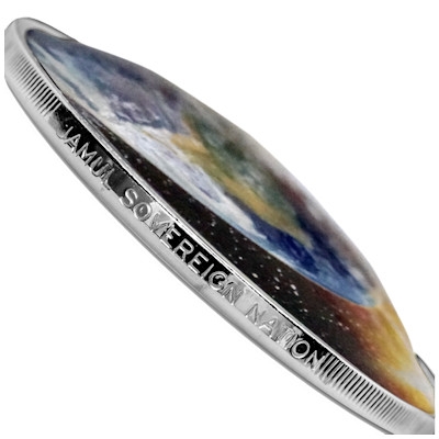 Betrachter der Silbermünze blicken auf Amerika – kein Wunder, schließlich wird das Sammlerstück von der Jamul Sovereign Nation, einem indigenen Volk der USA, ausgegeben, wie auf dem Münzrand verzeichnet ist. Geprägt wird die Münze von der Native American Mint. In höchster Proof-Qualität hergestellt, leuchtend koloriert und mit gewölbter Oberfläche bietet die Münze ein eindrucksvolles Bild des Planeten. Sie hat einen Durchmesser von 39 Millimetern und enthält 1 oz Feinsilber bei einem Feingehalt von 999/1000. Auf der Wertseite sieht man einen Adler mit der US-Flagge in den Krallen und den Nennwert von einem Dollar. Ein Echtheitszertifikat bekommen die Münzsammler mit dazu. Außerdem ist mit der ersten Ausgabe zur Sonne ein Sammeletui für die ganze Serie erhältlich.