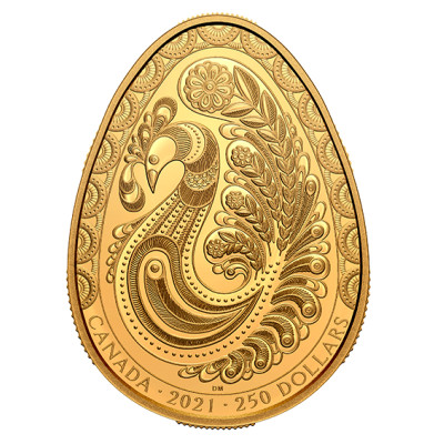 Kein Fabergé-Ei, aber dennoch ein besonderer Schatz und ein wertvolles Geschenk zum kommenden Osterfest ist die diesjährige Pysanka-Goldmünze der Royal Canadian Mint. Inspiriert von ukrainischem Bräuchen zeigt das eiförmig gestaltete Sammlerstück traditionelle österliche Motive – in hochwertigster Prägung. Diese exquisite Goldmünze hat eine streng limitierten Auflage von nur 250 Exemplaren.