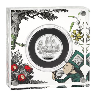 alice-hinter-den-spiegeln-half-oz-silber-koloriert-etuiNach dem großen Erfolg von Alice im Wunderland schrieb Lewis Carroll die Fortsetzung Through the Looking-Glass, die 1871 – also vor inzwischen 150 Jahren – erschien. Ihr hat die britische Royal Mint die zweite Ausgabe ihrer Alice-Serie gewidmet. Münzsammler haben die Wahl zwischen verschiedenen Editionen, wobei die Silbermünze aus einer halben Unze Feinsilber zusätzlich mit einem liebevoll gestalteten Acryl-Etui punktet. Die Auflage ist auf 5.000 Stück limitiert.