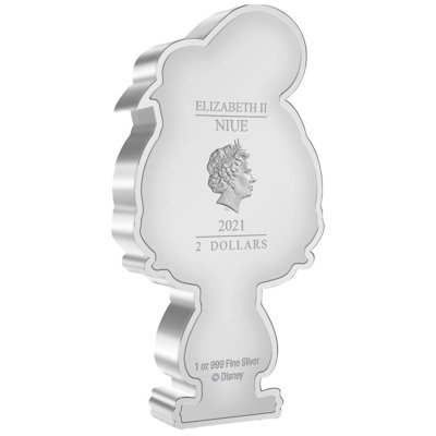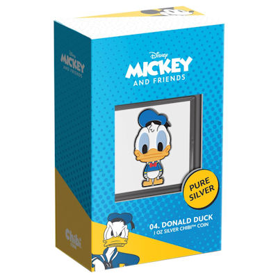 Der Chibi-Donald hat als lizenziertes Disney-Produkt große Ähnlichkeit mit der Comic-Figur – vom orange-gelben Schnabel bis zum blauen Outfit. Während er als kolorierte Münzversion rundum fröhlich wirkt, präsentiert die Verpackung – die übrigens ein Sichtfenster hat – auch die grantig Version, die die Fans des Enterichs lieben. Die Silbermünze ist 31,5 mal 36,0 Millimeter groß und enthält 1 oz Feinsilber (Feingehalt: 999/1000). Der Rand ist glatt. Umseitig findet man das Porträt der Königin Elizabeth II. von Ian Rank-Broadley. Das Ausgabeland Niue und der Nennwert von zwei Dollars sind ebenfalls auf dieser Seite verzeichnet. Das Sammlerstück wird mit einem nummerierten Echtheitszertifikat ausgegeben.