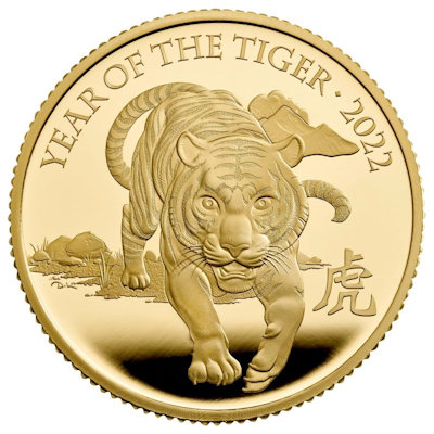 Tiger sollen geboren Anführer sein. Immerhin gehören unter anderem Charles de Gaulle, Fidel Castro oder auch der österreichische Kanzler Sebastian Kurz dazu. Eine der bekanntesten Persönlichkeiten mit diesem Tierkreiszeichen ist Königin Elizabeth II. Als König der Tiere hat der Künstler David Lawrence den Tiger für das Design der Goldmünzen entworfen: Das Muster auf der Stirn des Tieres bildet das entsprechende chinesische Schriftzeichen. Seitlich ist auch das Zeichen für Tiger platziert, während die Jahreszahl und die Aufschrift Year of the Tiger randläufig oben aufgeprägt sind.