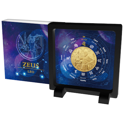 goetter-und-sternzeichen-loewe-zeus-25-g-kupferDie fünfte Ausgabe der Kupfermünzen-Serie Olympians & Zodiac ist einem besonders strahlenden Paar gewidmet: Der Göttervater Zeus wird hier dem Sternzeichen Löwe zugeordnet. Beide spielen gern die erste Geige und leben ihre Leidenschaften voll aus. Das Sammlerstück für selbstsicheren Löwen wird in einem schönen Etui mit dem gesamten Tierkreis ausgeliefert und hat eine limitierte Auflage von 3.000 Exemplaren.