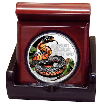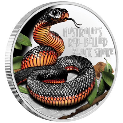 deadly-and-dangerous-schwarzotter-1-oz-silber-koloriertEs ist allgemein bekannt, dass in Australien die meisten giftigen Tiere der Welt leben. Ihnen setzt die Perth Mint mit der Silbermünzen-Serie „Deadly & Dangerous“ ein beeindruckendes Denkmal. Natürlich sind nicht alle Vertreter der örtlichen Fauna, die dafür ausgewählt werden, gleich giftig. Die Rotbauch-Schwarzotter zum Beispiel stellt für Menschen keine große Gefahr dar. Trotzdem ergibt die Schlange ein faszinierendes Motiv. Die Auflage des Sammlerstücks ist streng limitiert auf nur 2.500 Exemplare.