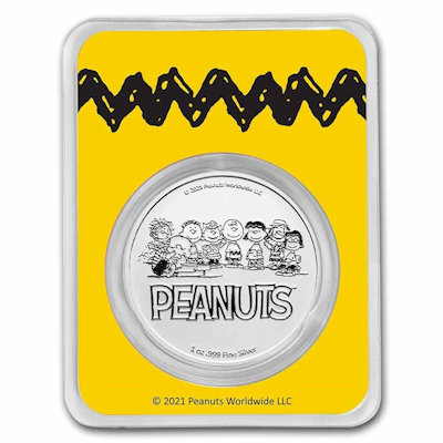 Die blaue Decke, spärliche Haare und das rote T-Shirt: Auf der Silberprägung sehen Fans Linus so, wie sie ihn kennen. Seine Freunde sind ebenfalls versammelt: Umseitig zeigt das Sammlerstück Schroeder, Pig Pen, Franklin, Sally, Charlie Brown, Lucy, Peppermint Patty und Marcie. Die gelbe Blisterverpackung mit dem Zickzackmuster ist nach dem Vobild von Charlie Browns Shirt gestaltet. Die Silberprägung hat einen Durchmesser von 39 Millimetern enthält 1 oz Feinsilber (Feingehalt: 999/1000). Sie ist in Stempelglanz-Qualität geprägt.