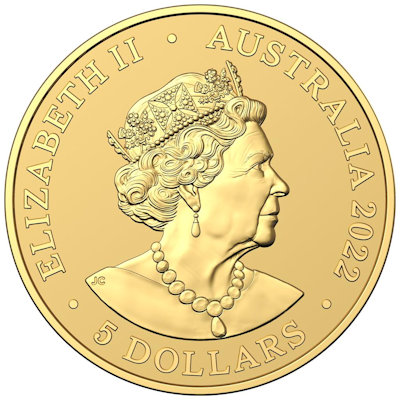 Der Kookaburra ist ebenso wie Känguru und Koala ein typischer und allseits beliebter Vertreter der australischen Tierwelt. Bekannt für seinen Ruf, der an ein menschliches Lachen erinnert, gilt der Vogel auch als „Buschmanns Uhr“, weil er vor allem in der Dämmerung zu hören ist. Trotz des kleinen Formats – der Durchmesser beträgt gerade mal 11,15 Millimeter – zeigt das Motiv der Goldmünze eine detaillierte und naturnahe Darstellung des Vogels. Er ist seitlich auf einem Ast sitzend geprägt. Am kräftigen Schnabel und dem großen Kopf erkennt man den Kookaburra.