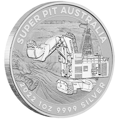 Beim Goldabbau in der Super-Pit-Mine wird durch Sprengungen Gestein bewegt und dann mit Baggern weggeschafft. In speziellen Anlagen wird das Gold aus dem Erz gewonnen. Damit Neugierige die Explosionen aus sicherer Entfernung beobachten können, gibt es einen Aussichtspunkt am Goldfields Highway. Die Super-Pit-Münzen 2022 zeigen einen der riesigen Bagger in der Mine. Das Gerät beeindruckt mit seiner detailreichen Gestaltung. Im Hintergrund ist die Felswand zu sehen, die in der Realität rund 600 Meter hoch ist.