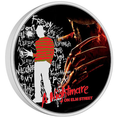 Wer hat Angst vor Freddy Krueger? Die New Zealand Mint erinnert mit einer neuen Silbermünze an den Horror-Klassiker A Nightmare on Elm Street aus dem Jahr 1984. Im Zentrum des kolorierten Motivs steht natürlich die markante Figur des Killers mit der Klauenhand. Die Auflage das Sammlerstücks für alle, die sich gern gruseln, ist auf 2.000 Exemplare limitiert.