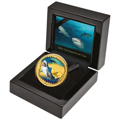 deadly-and-dangerous-tiger-shark-1-oz-gold-koloriertDie Serie „Deadly and Dangerous“ der australischen Perth Mint präsentiert sich mit der neuen Ausgabe noch spannender. Ein Design mit Biss setzt dafür den Tigerhai gekonnt in Szene. Farbapplikationen runden das Motiv der Goldmünze ab. Sammler sollten schnell zuschnappen, denn die Auflage ist bei der Gold-Edition streng limitiert: Nur 150 Exemplare sind zu haben.