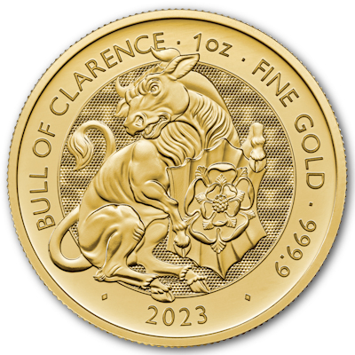 In Hampton Court, seiner bevorzugten Residenz, ließ Heinrich VIII. entlang der Brücke über den Burggraben Wappentiere aus der Geschichte seiner Familie und der seiner dritten Gemahlin Jane Seymour aufstellen. Diesen Royal Tudor Beasts hat die Royal Mint eine eigene Münzserie im Anschluss an die Queen’s Beasts gewidmet. Die dritte Ausgabe ist der Bull of Clarence, der als Goldmünze aus einer oder einer Viertelunze Feingold zu haben ist.