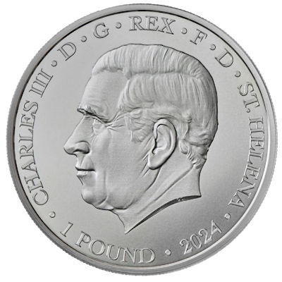 una-and-the-lion-2024-1-oz-silber-wertseiteGeprägt aus 1 oz Feinsilber, hat die Silbermünze bei einem Feingehalt von 999/1000 einen Durchmesser von 38,60 Millimetern. Der Münzrand ist geriffelt. Die Wertseite zeigt das Porträt von König Charles III. über dem Nennwert von einem Pfund. Die Umschrift bedeutet „König von Gottes Gnaden, Verteidiger des Glaubens“. Das Ausgabeland ist die Insel St. Helena. Die Silbermünze ist in BU-Qualität geprägt. Ein Teil der Auflage wird in Blisterverpackung ausgegeben.