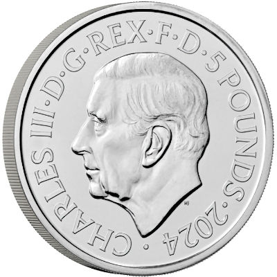 Die Kupfer-Nickel-Münze hat einen Durchmesser von 38,61 Millimetern. Das Gewicht liegt bei 28,280 Gramm. Die Wertseite ist dem Porträt von König Charles III. vorbehalten, daneben sind der Nennwert von 5 britischen Pfund und die Jahreszahl 2024 verzeichnet. Das Sammlerstück hat einen geriffelten Rand. Ausgegeben wird die Münze in einer passenden Blister-Verpackung.