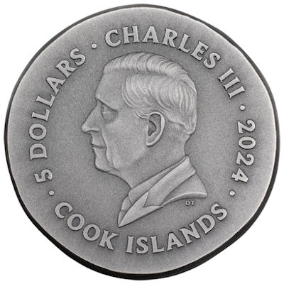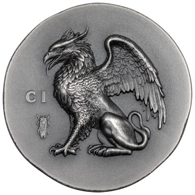 Das Motiv der Silbermünze orientiert sich an antiken Darstellungen. Es zeigt den Greif aufrecht sitzend von der Seite. Neben ihm ist eine Zikade zu entdecken – ein beliebtes Motiv auf antiken Münzen. Das Sammlerstück hat einen Durchmesser von 33,0 Millimetern. Es enthält 1 oz Feinsilber bei einem Feingehalt von 999,9/1000. Die Wertseite zeigt das Porträt von König Charles III., der das offizielle Staatsoberhaupt des Ausgabelands Cook Islands ist. Der Nennwert ist mit 5 Dollars angegeben. Auch die Jahreszahl 2024, die im Gegensatz zum perfekten Antik-Look der Silbermünze steht, ist auf dieser Seite zu finden. Ausgegeben wird die Greifenmünze im Etui und mit Echtheitszertifikat.