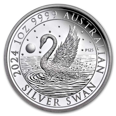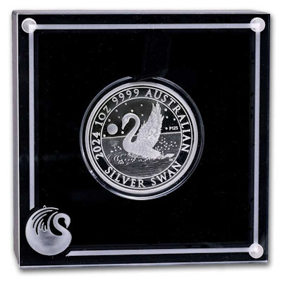 Dieses Bild ist von einem Rahmen umgeben, auf dem der Titel Australian Silver Swan, das Feingewicht und der Feingehalt der Silbermünze verzeichnet sind: Sie ist aus 1 oz Feinsilber geprägt und hat einen Feingehalt von 99,99 Prozent. Der Durchmesser liegt bei 40,90 Millimetern. Der Münzrand ist geriffelt. Die Wertseite zeigt das Porträt von König Charles III. über dem Nennwert von einem Dollar. Verpackt ist das Sammlerstück in ein Etui mit durchsichtigem Deckel, auf dem auch der stilisierte Schwan aus dem Logo zu finden ist. Eine Umverpackung und ein nummeriertes Echtheitszertifikat gehören außerdem dazu.