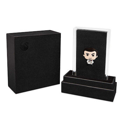 Nicht auffallen, sich zurückhalten, wechselnde Namen verwenden – all das ist seine Sache nicht: Wenn James Bond in seinem Smoking auftaucht, ist die Neugier der Anwesenden geweckt. Als erstes holt er sich dann einen Martini an der Bar. Und trotz des stilvollen Auftretens darf natürlich die Waffe nicht fehlen. So erfand Autor Ian Fleming den Spion in den 1950er Jahren und so zeigte er sich bei zahlreichen Filmauftritten von Dr. No über GoldenEye bis zu Keine Zeit zu sterben. Auch die Perth Mint präsentiert ihn so – als Minted Mini. Der Winzling mit Pistole hat eine Augenbraue herausfordernd gehoben, wirkt aber durch das Format vor allem putzig.