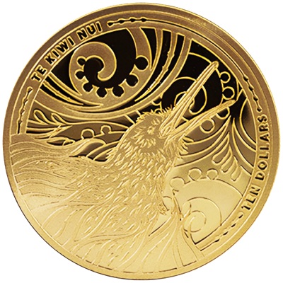 kiwi-2026-gold-3Der randläufige Schriftzug verrät den Maori-Namen des abgebildeten Vogels: Te Kiwi Nui, der Nördliche Streifenkiwi oder Apteryx mantelli. Diese Art ist relativ weit verbreitet, aber trotz aller Bemühungen zu ihrem Schutz gefährdet. Die flugunfähigen, rund 65 Zentimeter großen Vögel werden leicht zur Beute von Katzen, Hunden oder Hermelinen, die erst mit den Europäern in ihren Lebensraum kamen. Die Silber- und Goldmünzen der New Zealand Post wollen deshalb immer auch auf das Schicksal dieser einzigartigen Tiere aufmerksam machen.