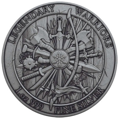 Auf dem Motiv der Silberprägung sitzt Sitting Bull nachdenklich auf einem Stein. Er trägt das Haar zu Zöpfen geflochten und hat einen prächtigen Federschmuck auf dem Kopf. Im Hintergrund sind ein Bison, ein Greifvogel und mehrere Tipis zu erkennen. Oben ist der Name des Kriegers aufgeprägt. Das Sammlerstück enthält 1 oz Feinsilber bei einem Feingehalt von 999/1000. Umseitig sind verschiedene Waffen aufgeprägt, die kreisförmig hinter einem Schild angeordnet sind.