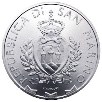 Nur gut 61 Quadratkilometer groß und vollständig von italienischem Staatsgebiet umschlossen, bildet San Marino eine Enklave mit gut 30.000 Einwohnern. Die gleichnamige Hauptstadt liegt auf dem 739 Meter hohen Monte Titano. An dessen steil abfallenden Hängen leben Wanderfalken. Diese gelten als die schnellsten Vögel der Welt. Wenn sie sich auf ihre Beute stürzen, können sie eine Geschwindigkeit von über 300 Stundenkilometern erreichen. Ihre Beute sind dabei andere Vögel. Das Motiv der Silbermünze zeigt einen Wanderfalken, der bereit zum Zuschlagen scheint. Die Flügel sind ausgebreitet, die Klauen ausgestreckt. Oben ist randläufig der englische Name Peregrine Falcon verzeichnet.