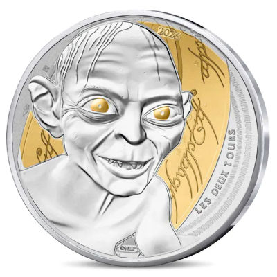 „Mein Schatz!“ dürfen sich die Münzsammler sagen, die eines der 50.000 Exemplare dieser Silbermünze aus Frankreich ergattert haben. Sie gehört zu einer Reihe von Sammlerstücken, die sich mit „Der Herr der Ringe“ beschäftigen. Anlass ist der Kinostarts des ersten Teils der Verfilmung von Peter Jackson vor mittlerweile 25 Jahren. Und auch wenn der hier Abgebildete sicher nicht zu den Sympathiträgern gehört, ist er doch eine der einprägsamsten und wichtigsten Figuren der Trilogie. Ohne Gollum wäre die Geschichte niemals gut ausgegangen.